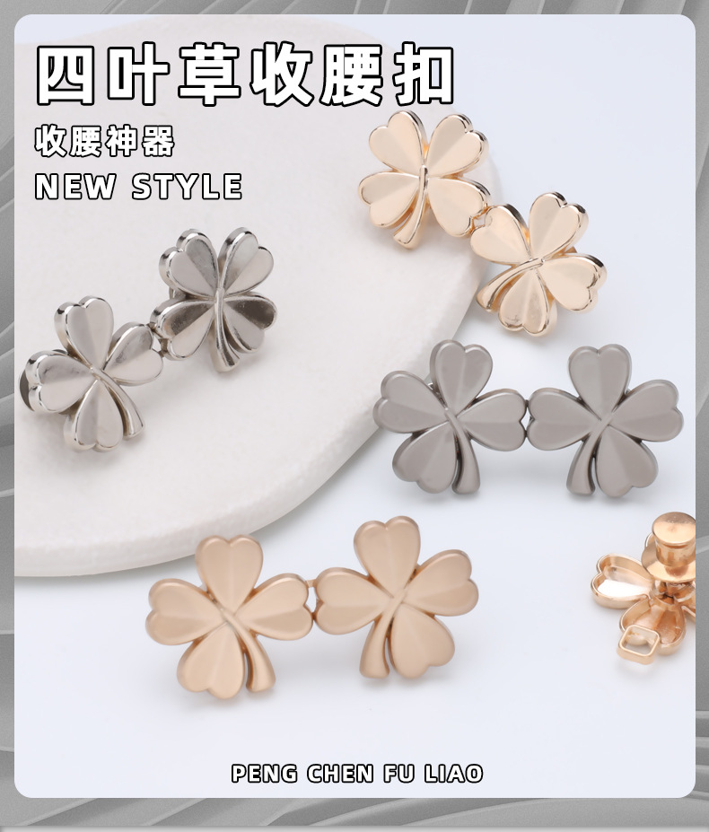 15分鐘前四叶草金属收腰扣 可拆卸免缝免钉收腰鈕扣 小對扣 牛仔裤收腰扣腰的神器 腰圍調節扣 固定扣 - 團購價10入組1199