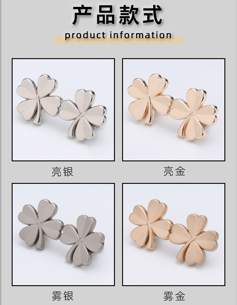 11分鐘前四叶草金属收腰扣 可拆卸免缝免钉收腰鈕扣 小對扣 牛仔裤收腰扣腰的神器 腰圍調節扣 固定扣 - 團購價10入組1199