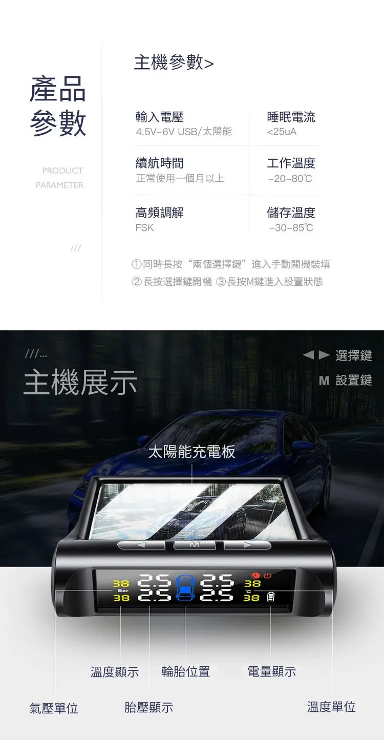 15分鐘前【官方站】太陽能無線胎壓監測器 輪胎盡在掌控!【太陽能 胎壓監測器】漏氣警報,胎壓警報,胎溫警報【太陽能電光板】無需佈線,可任意擺放!適用於所有輪胎,安裝超簡單,一看就會! - 【太陽能 胎壓監測器】
