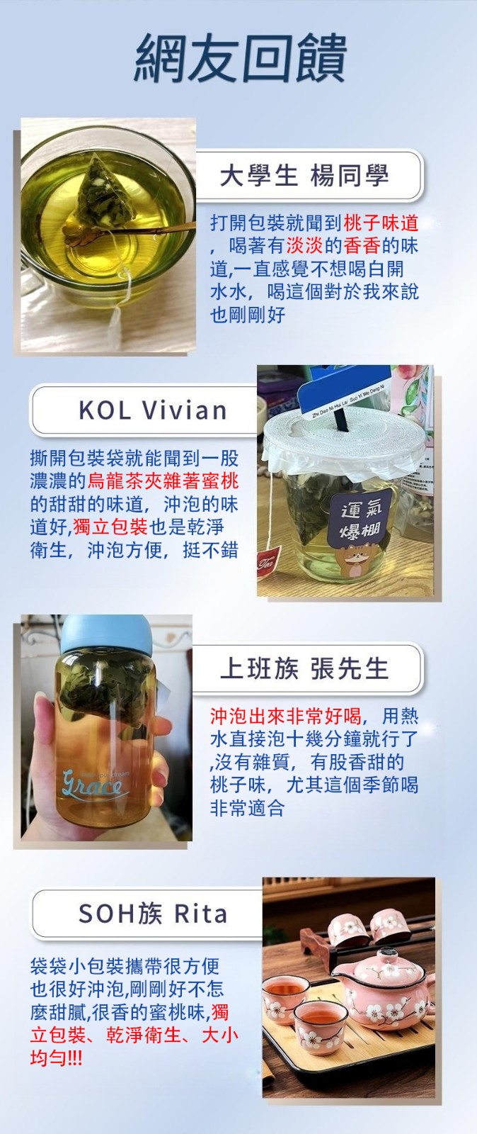 半小時前【買二送一】“美容佳品”蜜桃烏龍茶,常喝減脂,美白去斑,雙倍排毒還利便,天然原料無添加,常喝免疫力提高,身体更轻松~ - 【買五送三】(滿滿維C、美白去斑、雙倍排毒)八入組共400包~僅需-NT$ 1598