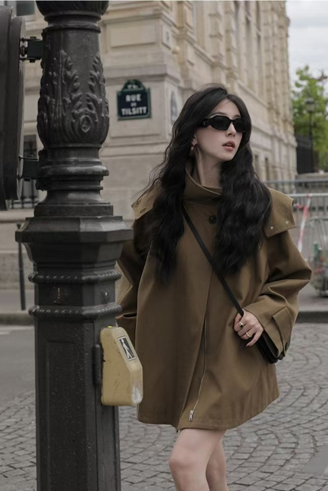 15分鐘前【現貨爆款】秋冬新款 斗篷風衣外套 美拉德英倫風 高品質連帽工裝 - 優惠價一入組NT$1398