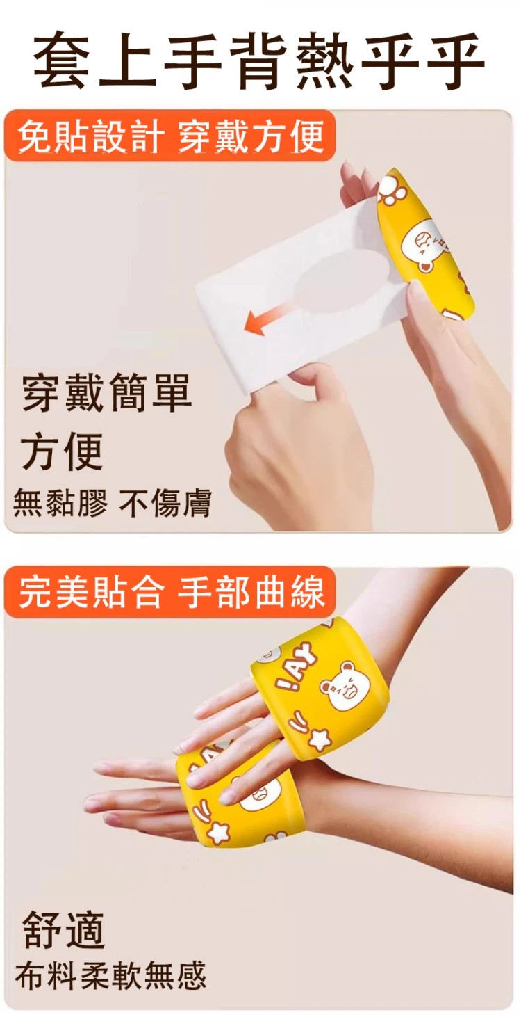 半小時前【穿戴式 暖手寶】暖手,學習兩不誤侶。完美貼合手部曲線 隨時隨地,使用方便暖和 使用方式不在單一,暖足、暖手、各部位皆可使用,隨時隨地暖身護解放雙手,冬日工作伴侶 - 【嘗鮮價】10片裝 款式自選 僅售NT$998