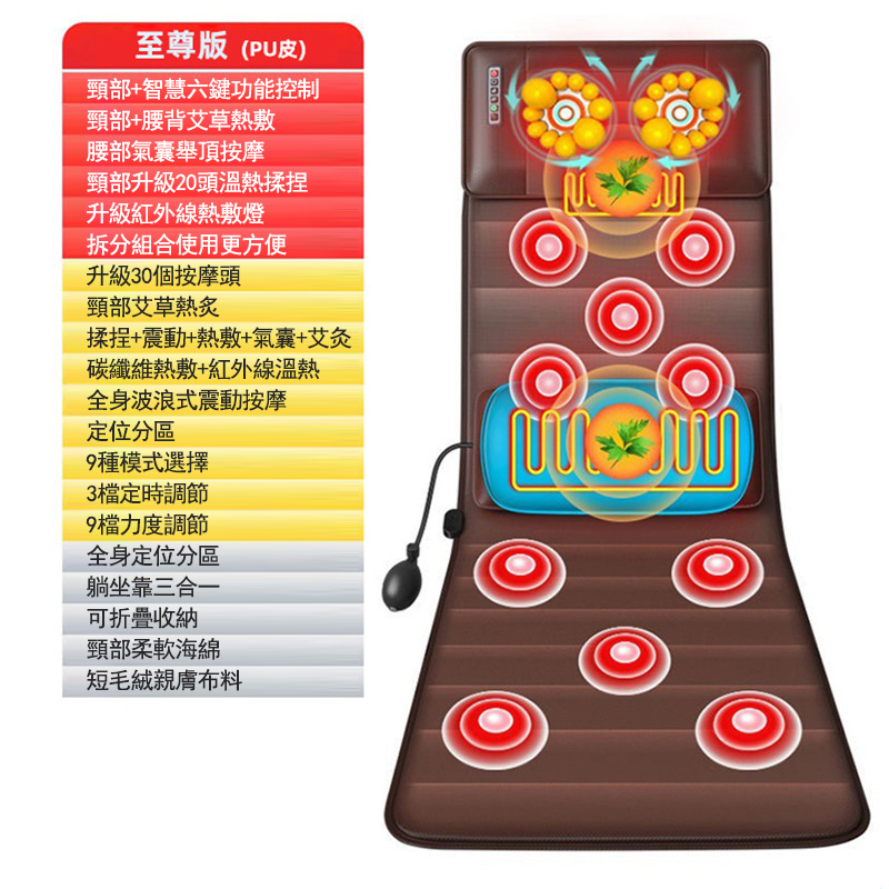 20分鐘前多功能全身按摩床墊 | 電動加熱頸椎、腰部、背部、腿部全方位按摩器,舒緩身心疲勞 - 豪華皮質款五合一可拆卸(藥枕+頸部滾輪+震動加熱+【腿部加熱揉捏】)