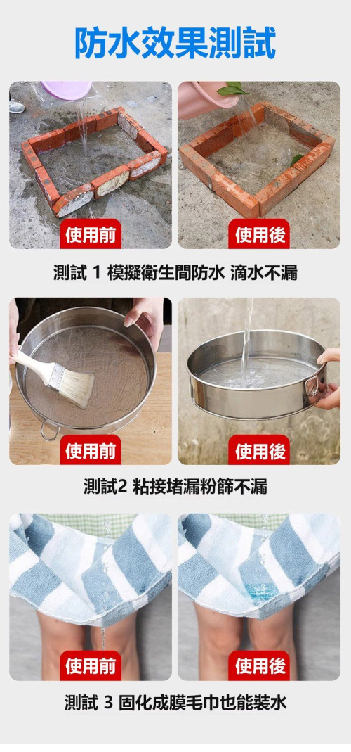 7分鐘前【廠家限時鉅惠】【一塗止漏】透明防水膠塗料300cc一桶可刷1-2坪, 外墻、陽臺、屋頂、瓷磚、屋内都可以通用 - 【一塗止漏】買二送一 3入組 NT$998