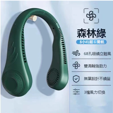 20分鐘前【24小時連續使用超長續航】#掛脖風扇 #3檔自由調節長續航 免運費 貨到付款 - 【綠色-無葉設計不饒發】【買一送一】
