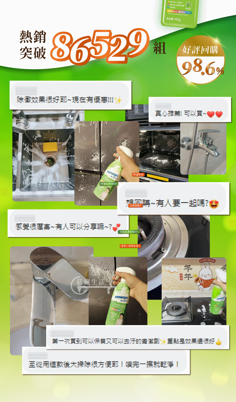 15分鐘前全屋煥然一新日本瘋搶除垢劑【Seaways極效潔垢劑】極效去汙X乾淨透亮 - 極效潔垢劑【6入】再享免運!