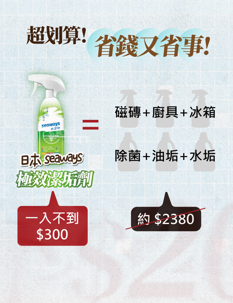 5分鐘前全屋煥然一新日本瘋搶除垢劑【Seaways極效潔垢劑】極效去汙X乾淨透亮 - 極效潔垢劑【6入】再享免運!