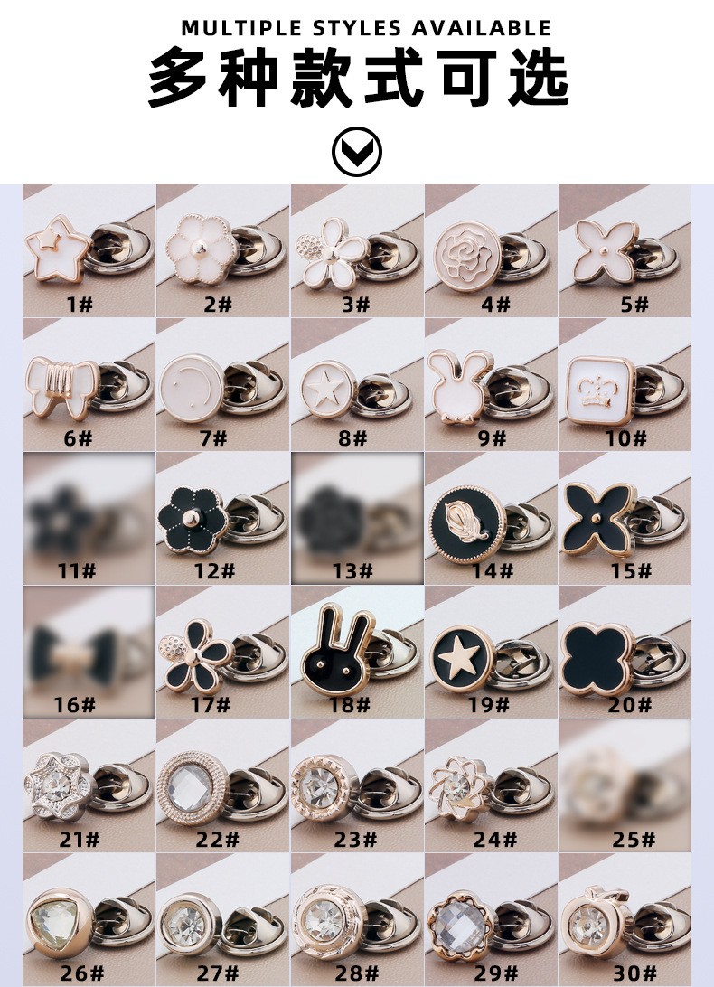 25分鐘前免钉防走光扣 衬衫开衫领口固定調節鈕扣 低领装饰胸针 別針 可拆卸隐形扣子 - 團購價30入組1199