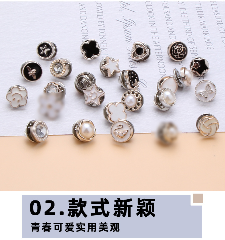 半小時前免钉防走光扣 衬衫开衫领口固定調節鈕扣 低领装饰胸针 別針 可拆卸隐形扣子 - 優惠價10入組799