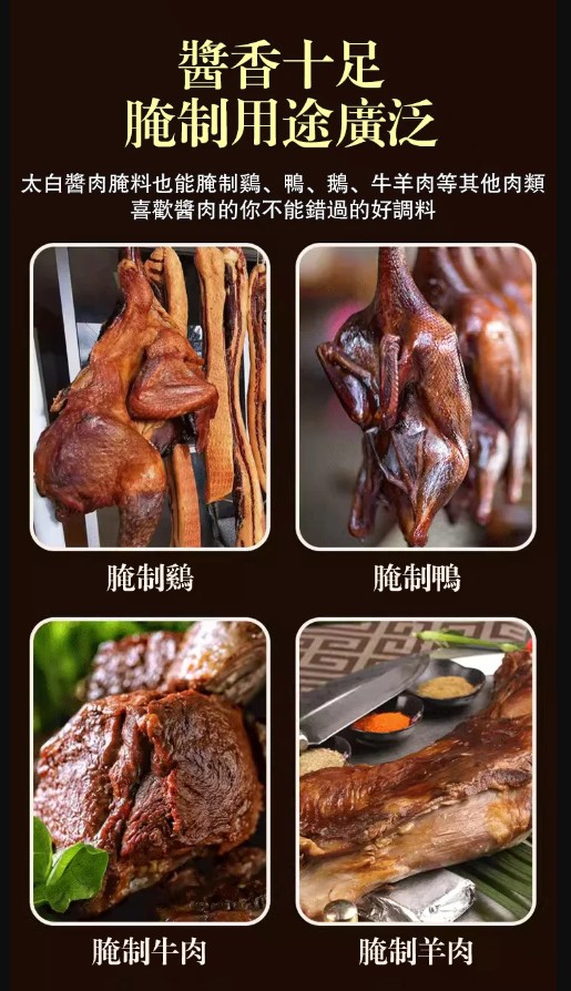 4分鐘前【一袋做6斤】太白醬肉醃料廚師兄川味風乾臘肉料300g/袋醬排骨猪肝 - 新品嘗鮮【太白醬肉醃料 300g/袋】3入組NT$980