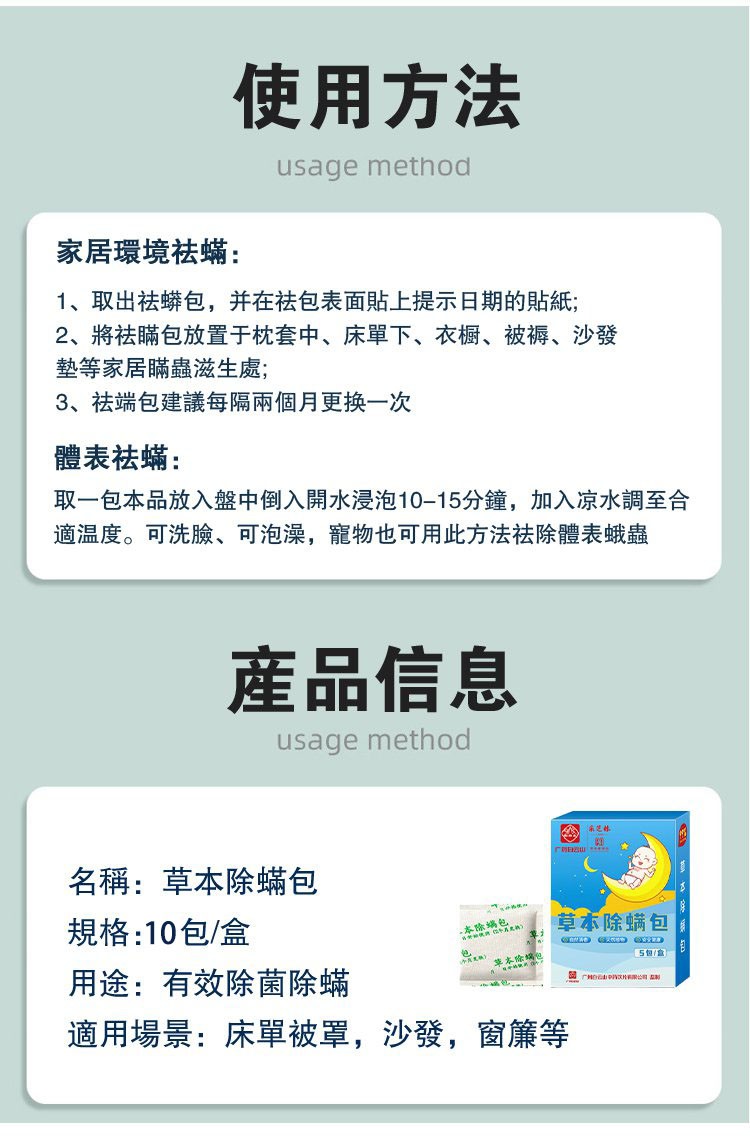 25分鐘前草本除蟎包「春夏季節」蟎蟲細菌容易滋生繁殖快,有了這款除草本除蟎包,在也不用擔心了!! - 「買三送七」十入組NT$1399(均價低至$139/盒)共100小包